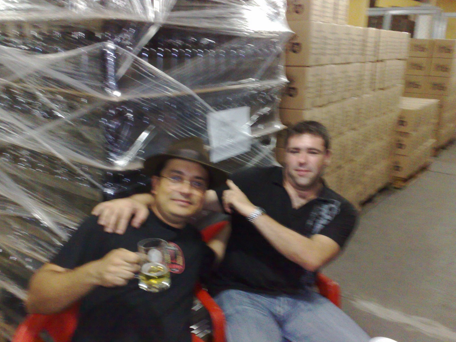 Olha elas ai ao fundo, um pallet de black rapadura, a famosa Vintage da Colorado. Cerveja de guarda “aguardando a liberação”. Eu e o Boto só na vontade 🙂