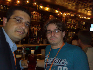 Eu e o Felipe…olha a october fest da Samuel Adams…bem vermelha!