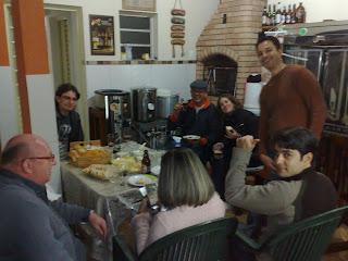 Ontem fizemos uma missa-extraordinária agradabilíssima na sede da Lamas Bier. É o mais nova variante das missas agora, a Santa Missa em Seu Lar :). Resolvemos marcar essa missa para desovar as cervejas que milagrosamente sobraram da festa de anivérsario do lama Elso e minha de sábado. Muitos e muitos queijos e petiscos e claro…nossa grande amiga Cerveja. On tap a Bock e a Pilsen da Schornstein e a Lama Podreira, nossa lambic com acerola e pitanga. Em garrafas todas as colorados, wals pilsen, margriet, medieval, bamberg e por ai vai. Claro que não podia faltar umas garrafinhas de caseiras, Daniel trouxe sua Dubbel…como é que essa cerveja não ficou entre as 6 do concurso da Eisenbahn não da pra acreditar. Também pintou uma Lama Porcaria, aprovada pelos devotos 🙂