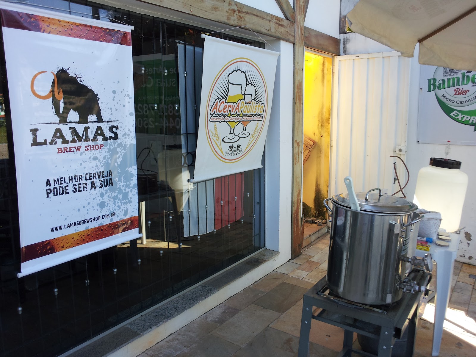 No último sábado fizemos uma brassagem aberta na calçada da Bamberg Express de Campinas, ou seja, fizemos uma cerveja ao vivo. Esta foi a primeira vez que Campinas viu uma brassagem aberta ao público em plena rua.