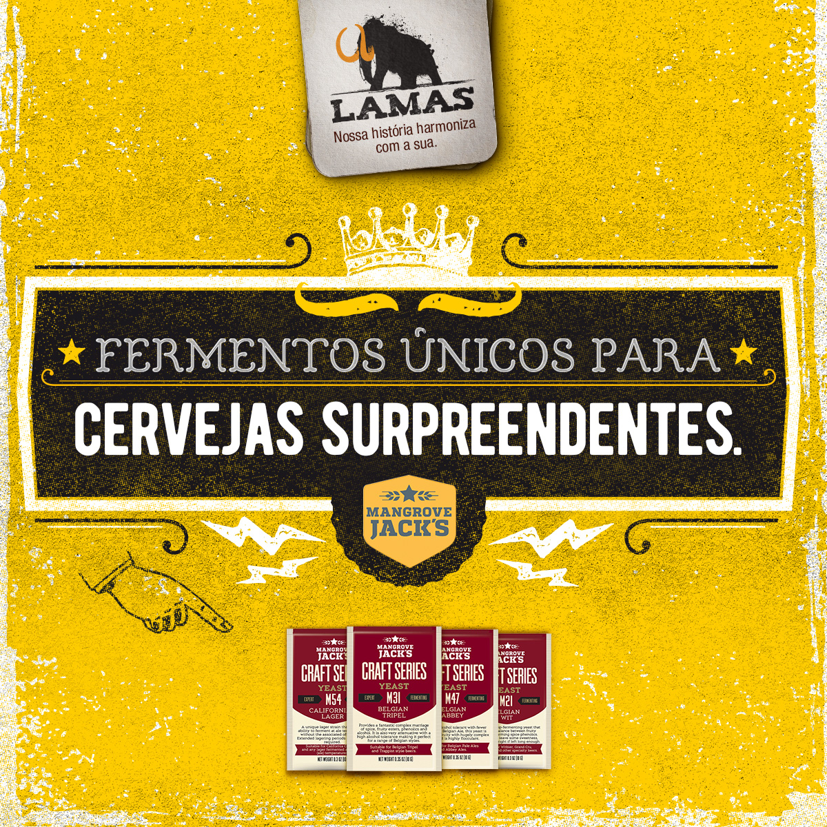A Mangrove Jacks cresceu seu portfólio de fermentos. Com isso chegamos a 15 cepas extraordinárias que vão tornar sua cerveja única. O número de cepas para lagers agora são 3. E as opções para cervejas belgas aumentaram para 3 cepas.